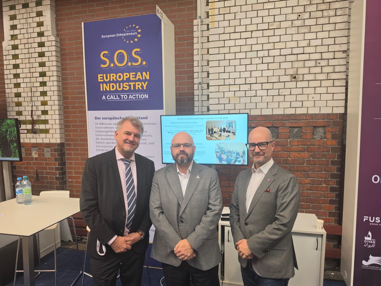 Stefan Moritz, generální sekretář evropské asociace MSP "CEA-PME", Josef Jaroš, předseda představenstva AMSP ČR, Vítězslav Hruška, garant AMSP ČR pro oblast zahraničních vztahů