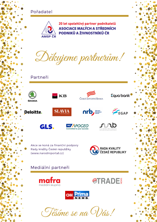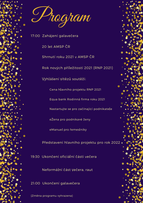 Letos chceme dát větší prostor firmám, které budou v průběhu galavečera oceněny v několika soutěžích. Program galavečera se ponese i v duchu 20. výročí asociace jako spolehlivého partnera podnikatelů. I letos očekáváme mnoho významných hostů z řad podnikatelů, zástupců vládní a politické sféry i společenského života.