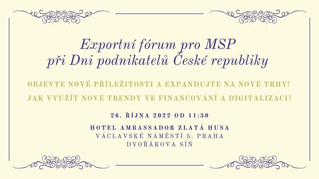 Exportní fórum pro MSP na téma: Objevte nové příležitosti a expandujte na nové trhy! Jak využít nové trendy ve financování a digitalizaci?
