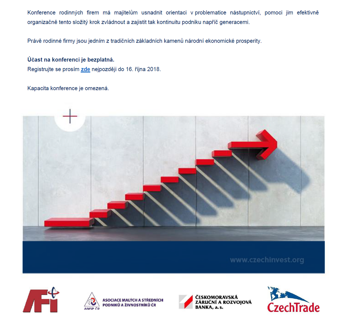 Kompletní infomrace na webu zde: https://www.czechinvest.org/cz/Homepage/Registrace/Konference-rodinnych-firem