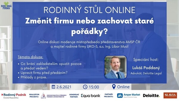 Pokud byste se rádi potkali s námi, speciálním hostem a ostatními majiteli a zástupci rodinných firem a probrali nejen hlavní téma nadcházejícího setkání, neváhejte a přihlaste se přes registrační odkaz níže. Počet účastníků je omezen, aby mohla probíhat společná diskuse, a to i s přizvaným odborníkem.