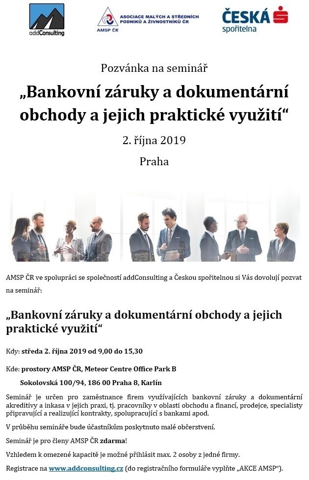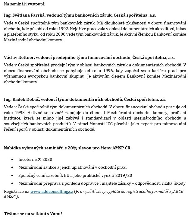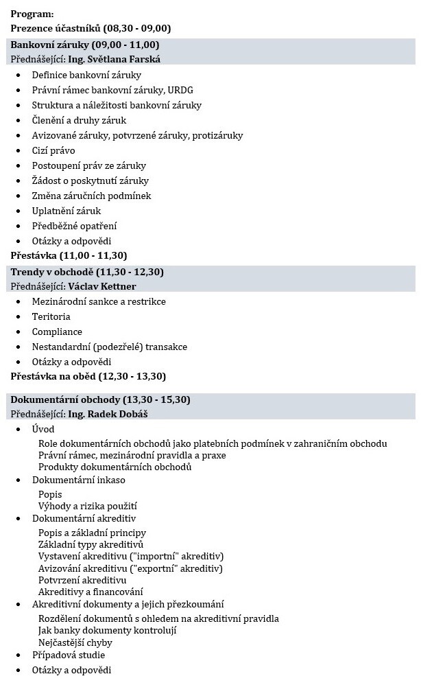 SEMINÁŘ: Bankovní záruky a dokumentární obchody a jejich praktické využití