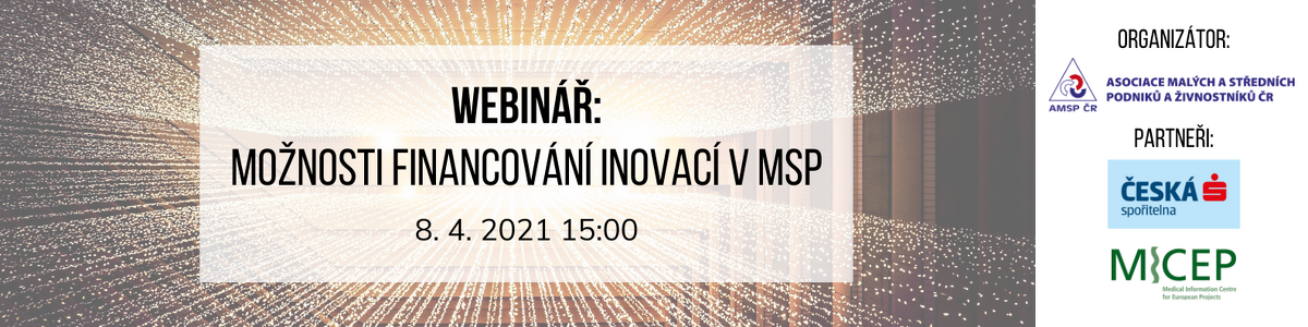 Rádi bychom Vás jménem Asociace malých a středních podniků a živnostníků ČR pozvali na nadcházející webinář s názvem „Možnosti financování inovací v MSP“.